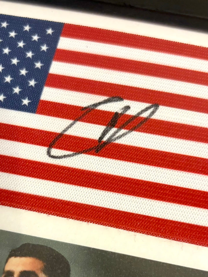 🖼️ Ingelijst geleverd: Deze Verenigde Staten aanvoerdersband met signatie van Pulisic wordt ingelijst geleverd met onze hoogwaardige kwaliteit lijsten!