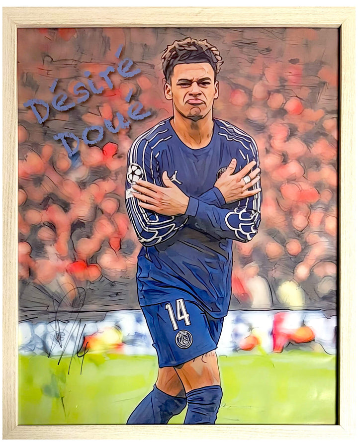 Deze digitaal gemaakte tekening is persoonlijk gesigneerd door één van de grootste jonge talenten ter wereld van dit moment, Désiré Doué!