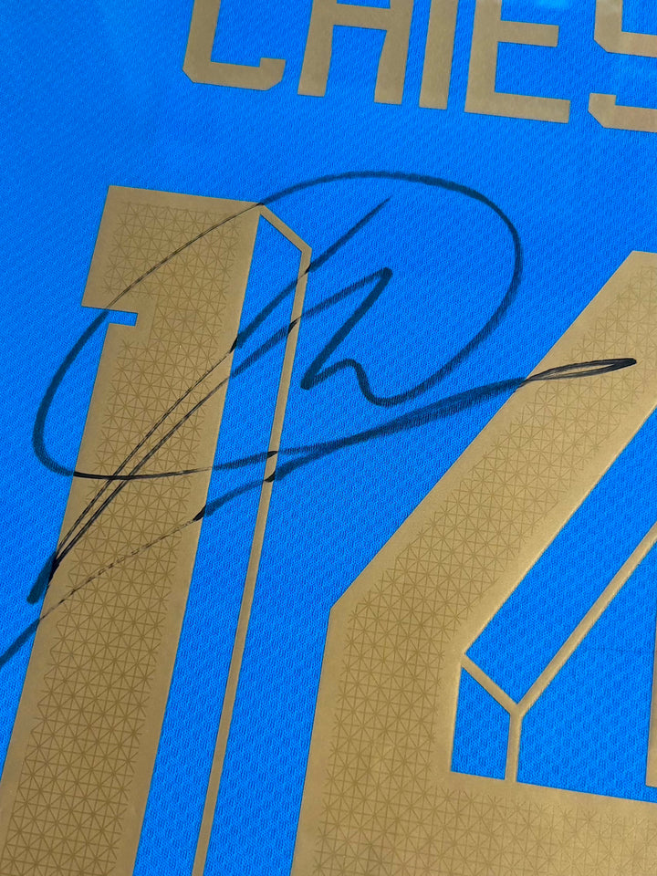 Breng de passie voor het spel tot leven en claim nu jouw Federico Chiesa gesigneerd origineel Italië shirt! Een tijdloos symbool van voetbalglorie! Bestel vandaag nog en maak dit unieke stuk van jou!🌟