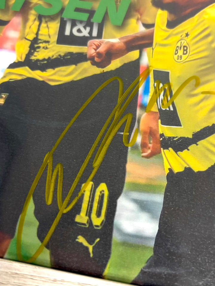Deze persoonlijk door Ian Maatsen gesigneerde Borussia Dortmund foto is een geweldig item voor iedere liefhebber van BVB!
