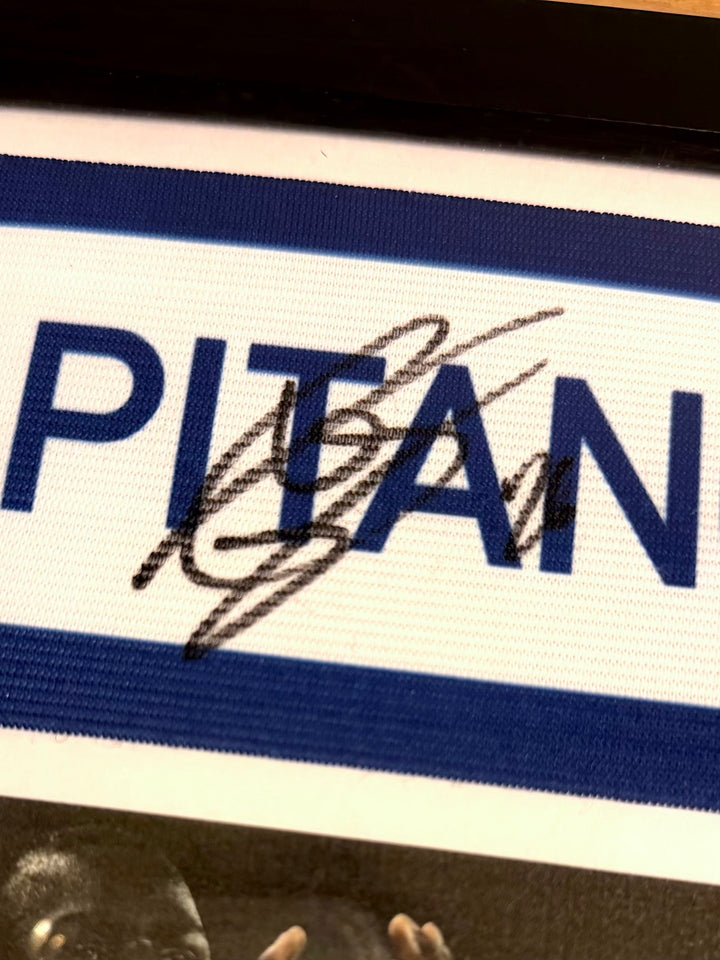 De aanvoerdersband wordt ingelijst met één van onze twee inlijst methodes naar keuze! Bij de eerste methode (de standaardmethode zoals op de eerste productfoto), wordt het item ingelijst geleverd met een foto van Kalidou Koulibaly terwijl hij dezelfde soort band om heeft, en een lux zilver of goud naamplaatje!