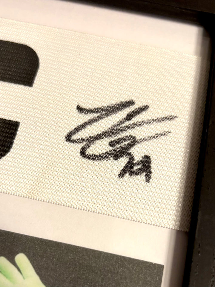 🖼️ Ingelijst geleverd: Deze aanvoerdersband met signatie van Chevalier wordt ingelijst geleverd met onze hoogwaardige kwaliteit lijsten!
