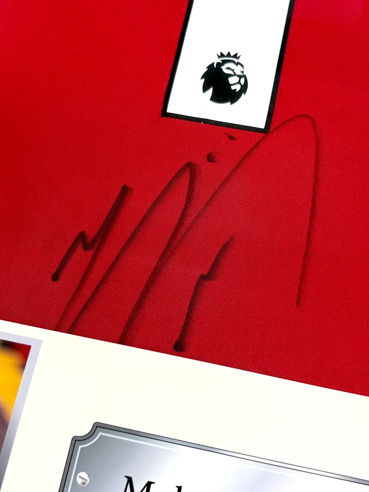 🖼️ Ingelijst geleverd: Dit shirt met signatie van Mohamed Salah, wordt ingelijst geleverd met onze nieuwe, premium kwaliteit lijsten. Nu met steviger hout langs de zijkanten en een modern design, gecombineerd met zeer helder glas. Het shirt wordt ingelijst met twee foto's en een naamkaartje, zoals op de afbeelding. Direct klaar om opgehangen te worden tussen jouw unieke collectie of in je ruimte! Een elegante uitstraling en klaar om bewonderd te worden!