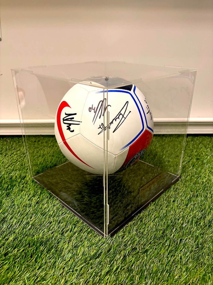 🖼️ Inlijsting opties: Omdat wij een stukje gratis service willen bieden, zodat jouw gesigneerde items meteen klaar zijn om een uniek plekje te krijgen, geven we zoals we bij shirts gratis inlijsting bieden, bij gesigneerde voetballen een gratis zwarte balhouder! Wil jij toch iets met een luxere uitstraling? Dan kun je tegen een extra vergoeding kiezen voor de doorzichtige balhouder, of zelfs voor de luxe box! Bij de luxe balbox is er ook een lux naamplaatje die op de box bevestigd zit, met de naam van de speler door wie deze bal gesigneerd is!