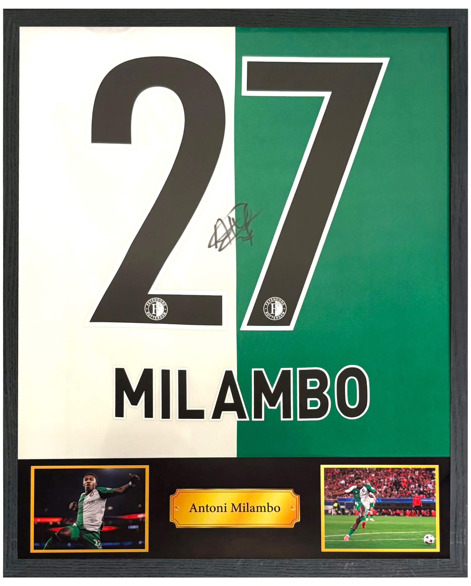 🖼️ Ingelijst geleverd: Dit shirt met signatie van Antoni Milambo, wordt ingelijst geleverd met onze nieuwe, premium kwaliteit lijsten. Nu met steviger hout langs de zijkanten en een modern design, gecombineerd met zeer helder glas. Direct klaar om opgehangen te worden tussen jouw unieke collectie of in je ruimte! Een elegante uitstraling en klaar om bewonderd te worden!