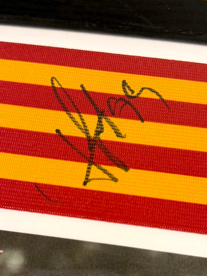 De aanvoerdersband wordt ingelijst met één van onze twee inlijst methodes naar keuze! Bij de eerste methode (de standaardmethode zoals op de eerste productfoto), wordt het item ingelijst geleverd met een foto van Mario Lemina, en een lux zilver of goud naamplaatje!